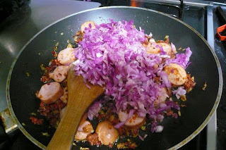 Se agregan las rodajas de salchicha (queda excelente con chorizo español pero no encontré)